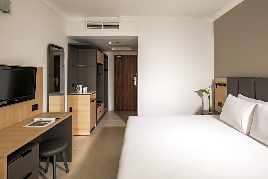 This room has a furnished balcony overlooking the internal courtyard and the mini golf course. All rooms are air conditioned and come with satellite TV and a fridge.
